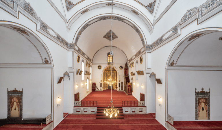 Emir Sultan Mosque, one of the most important architectural structures of Bursa, is located within the borders of Yıldırım district. It is situated between the cypress and plane trees next to the “Emir Sultan Cemetery” in the neighborhood of the same name in the east of Bursa. It was built at the beginning of the 15th century by Hundi Hatun, the daughter of the 4th Ottoman Sultan Yıldırım Bayezit and the wife of Emir Sultan after the death of Emir Sultan. The traces of the Ottoman baroque style can be seen in all the architectural details and carved decorations inside the mosque. The pulpit of the mosque is decorated with Iznik tiles.